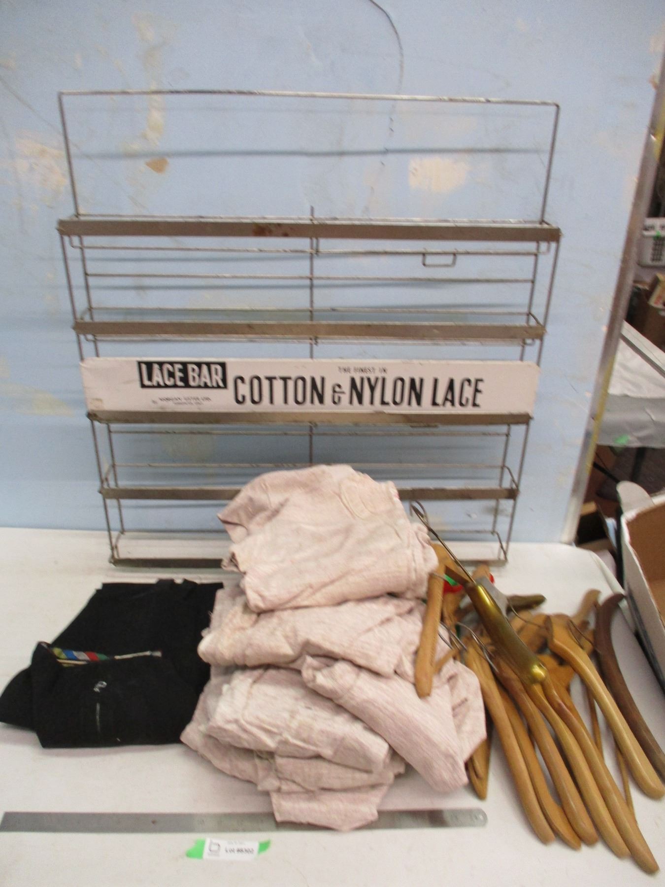 Nylon Lace Display Rack and Circle of Wooden Hangers