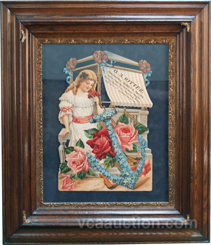 O.A. Ritter Automobiles, Buggies & Surries Die-Cut Embossed Cardboard Sign, in good condition in frame - 25" x 29"