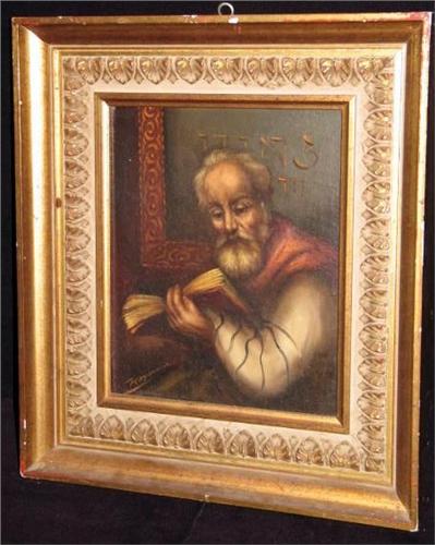 O/B, Icon, religious man reading book, signed Raynoud or Raymond, 8" x 10".