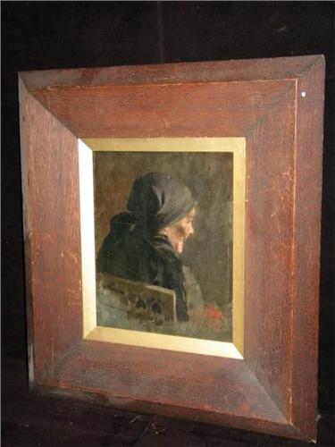 O/B, Old Woman Portrait, signed Millet, 19C, 9" x11".