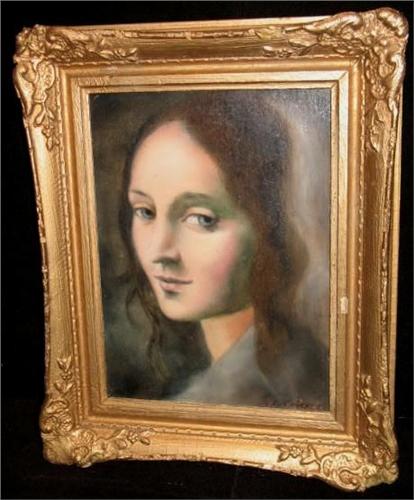 O/B Portrait of Donna Kilmer, signed Frederick Carl Frieske, 20C., 7" x 9.5".