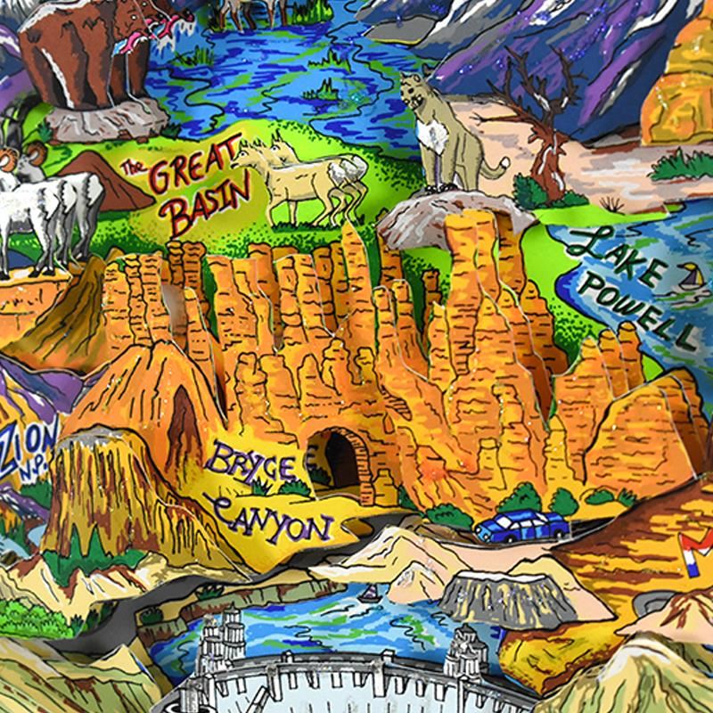 "O Beautiful for Spacious Skies" is a 3D limited edition silk screen construct on paper by Charles Fazzino, DX numbered and hand signed by the artist. This piece comes custom framed. Includes Certificate of Authenticity. Measures approximately 32.5" x 38.5" (framed), 24" x 30" (image).