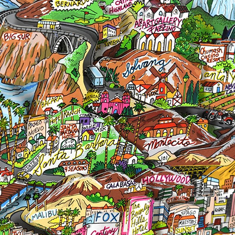 "O Beautiful for Spacious Skies" is a 3D limited edition silk screen construct on paper by Charles Fazzino, DX numbered and hand signed by the artist. This piece comes custom framed. Includes Certificate of Authenticity. Measures approximately 32.5" x 38.5" (framed), 24" x 30" (image).