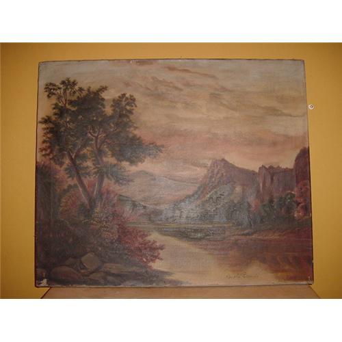 Un-signed oil on canvas of the Potomic River. The painting is in good condition with a couple of scrape along the edge where there was a frame.