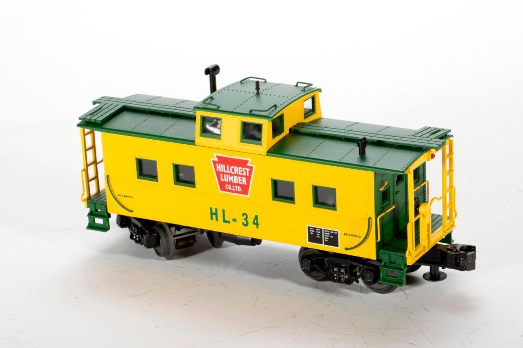 MTH 20-3039-1 Hillcrest Lumber Company Climax Locomotive and 20-91028 Hillcrest Lumber Company Caboose. Both in the original packaging well shelf worn.