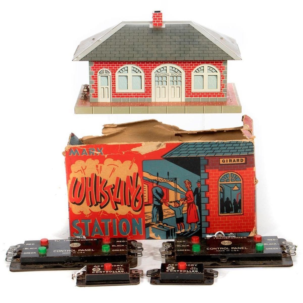 Girard Whistling Station with 1605 Accessory Controller, (2) Marx Switch controllers, (3) hanks of Marx three conductor switch cable, 1605 Accessory Controller
