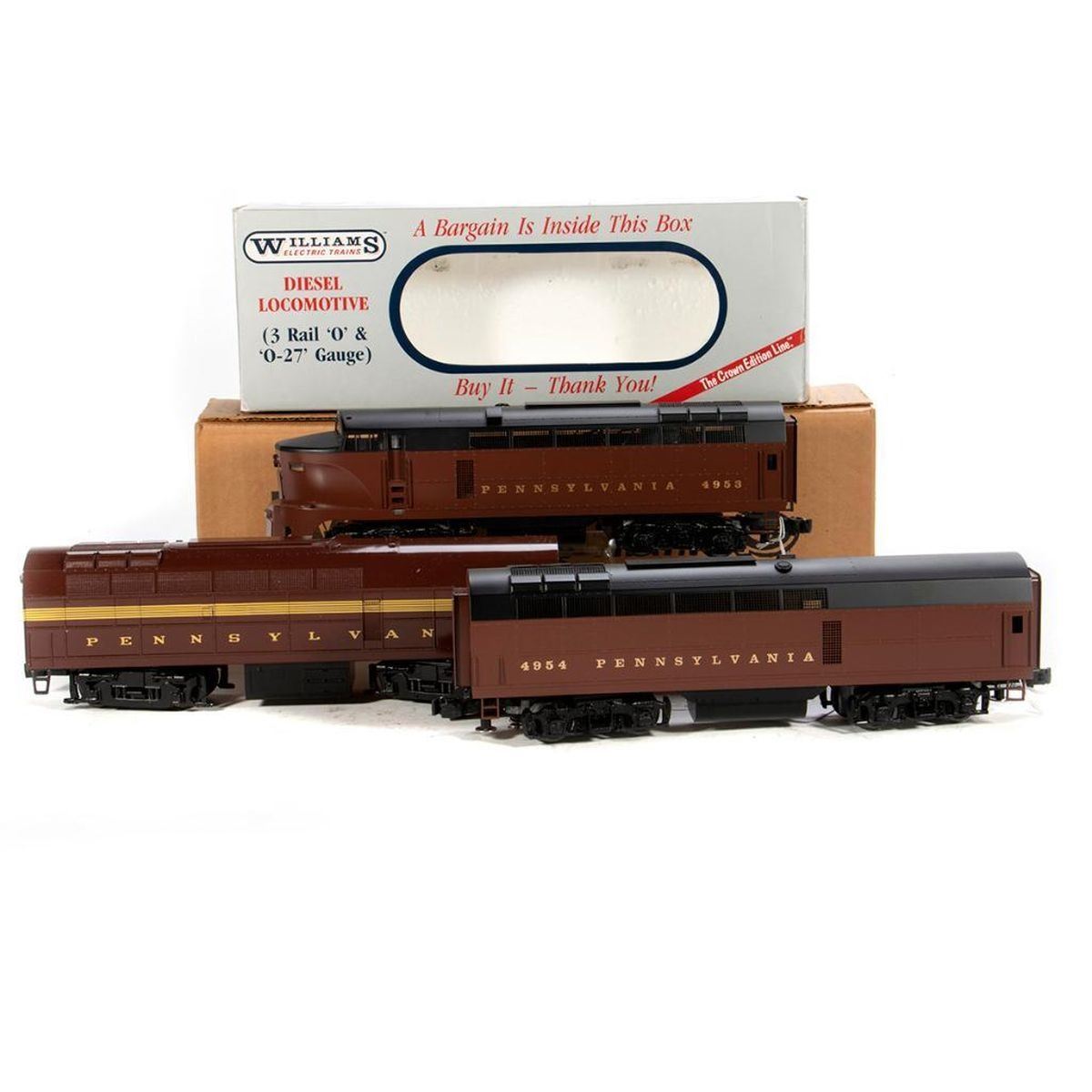 O Gauge W.R.L. PRR Sharknose Diesel Powered A Unit, B Unit and Williams Dummt B Unit