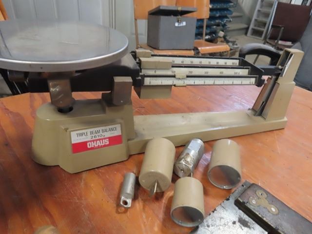 O'Haus Triple Beam Balance Scale, Wood Case with Wood Carving Tools
