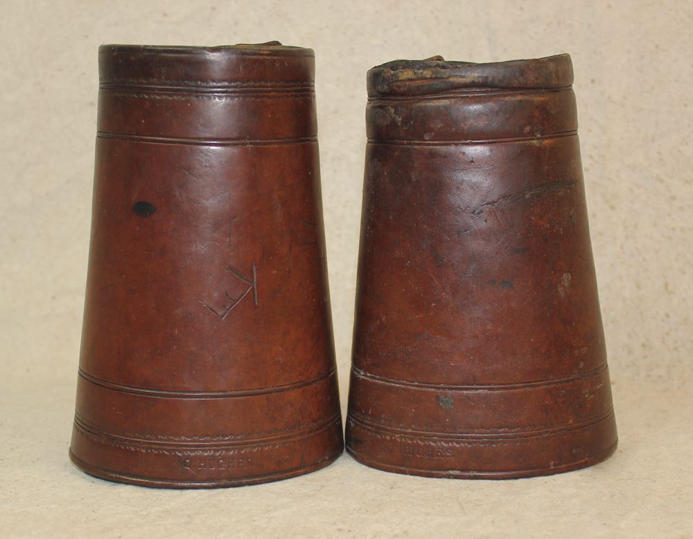 Very nice light colored cuffs with decorative border tooling and nice maker's mark at bottom.