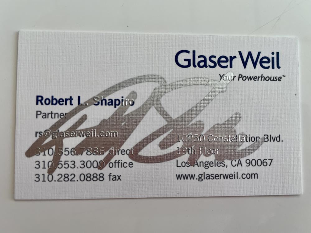 O.J. Lawyer Robert Shapiro signed business card. 2x3 inches
