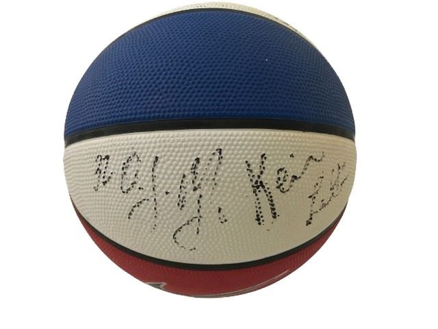 O.J. Mayo #32 and Kevin Love #41 signed Nike 500 outdoor red white and blue leather basketball from their USC days.