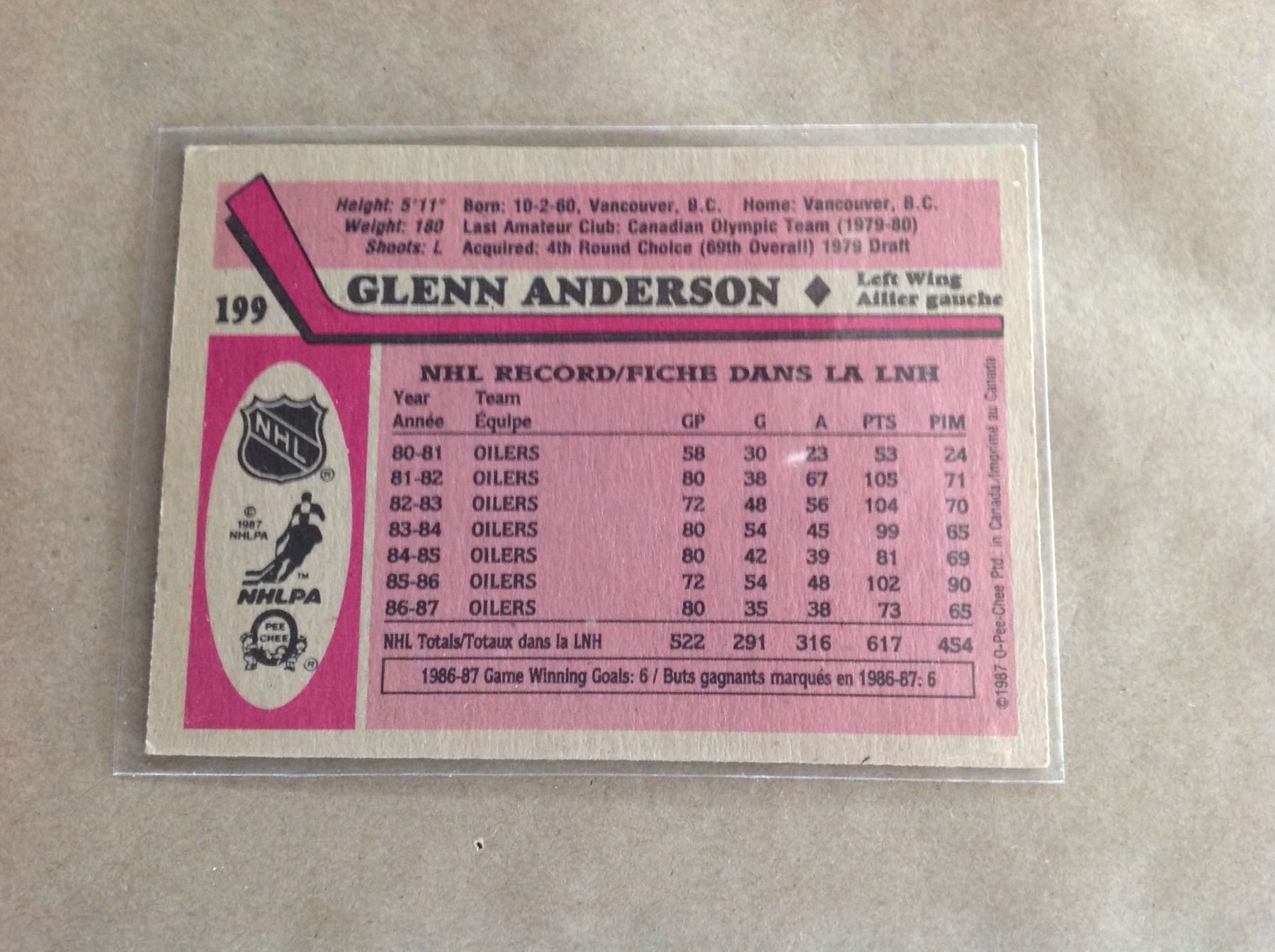 1987 Edmonton Oilers Left Wing Autographed Glen Anderson Hockey Card