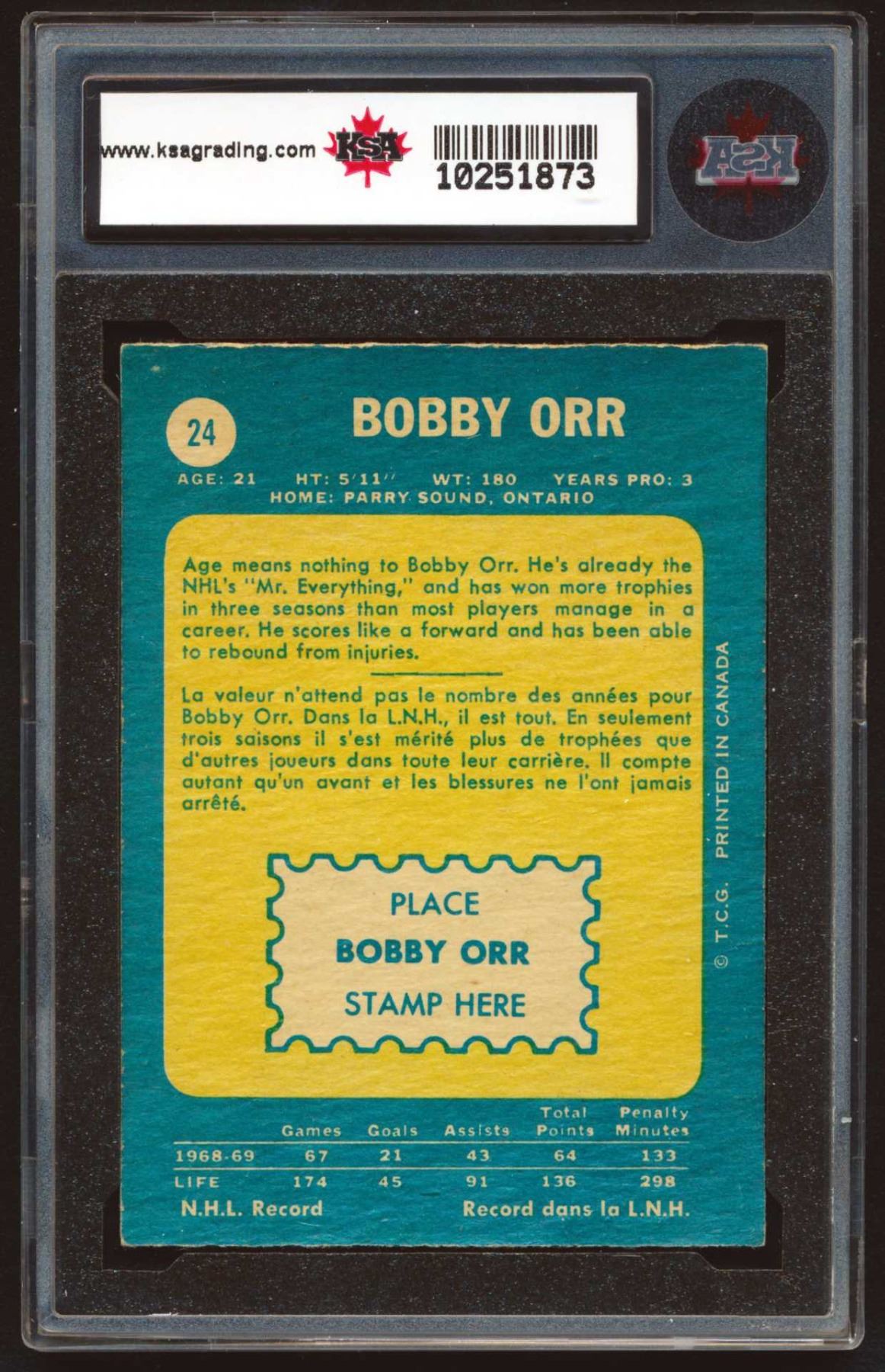 Bobby Orr #4 , of O-Pee-Chee Company #24 (1969-70) graded by KSA: 4 VGE # 10251872.