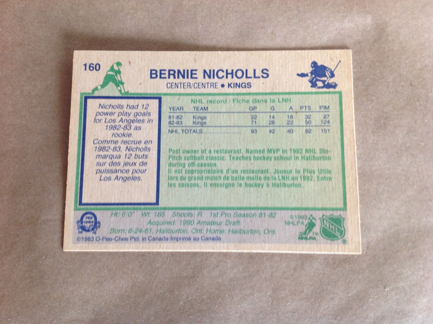 1982/83 Los Angeles Kings Hockey Card * Bernie Nicholls