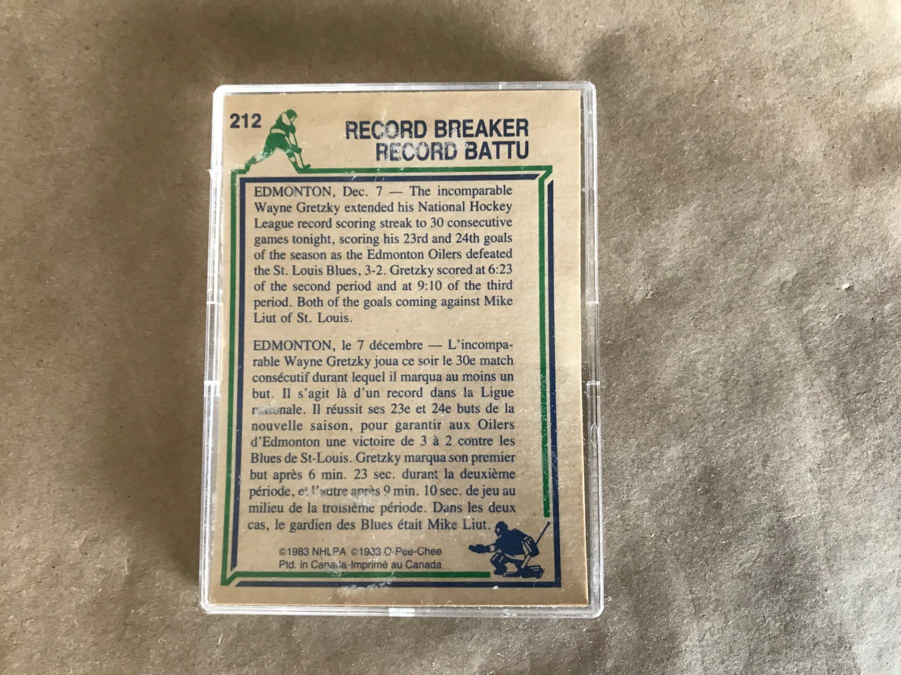 1983 Record Breaker Hockey Scoring Card * Wayne Gretzky