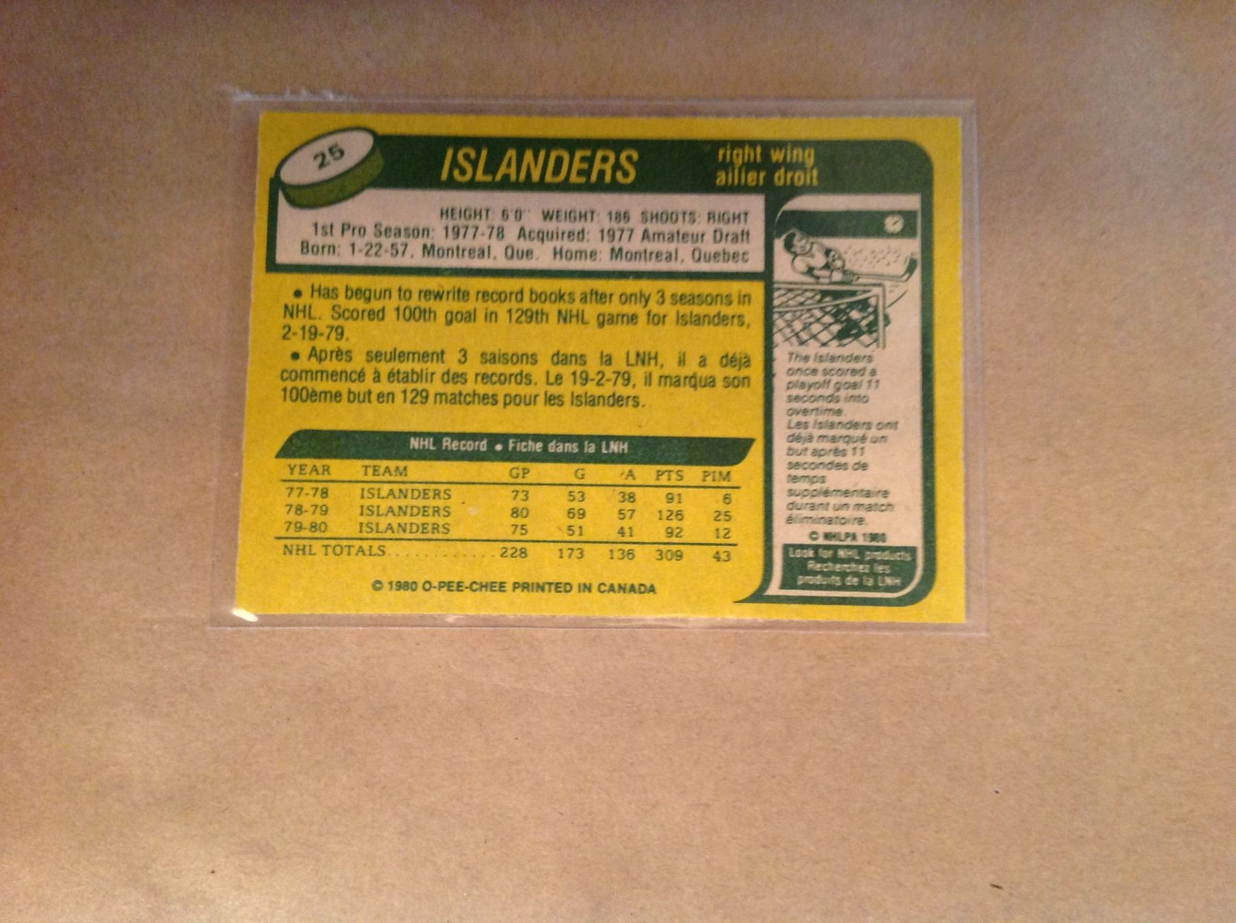 1980 NY Islanders Right Wing - Mike Bossy