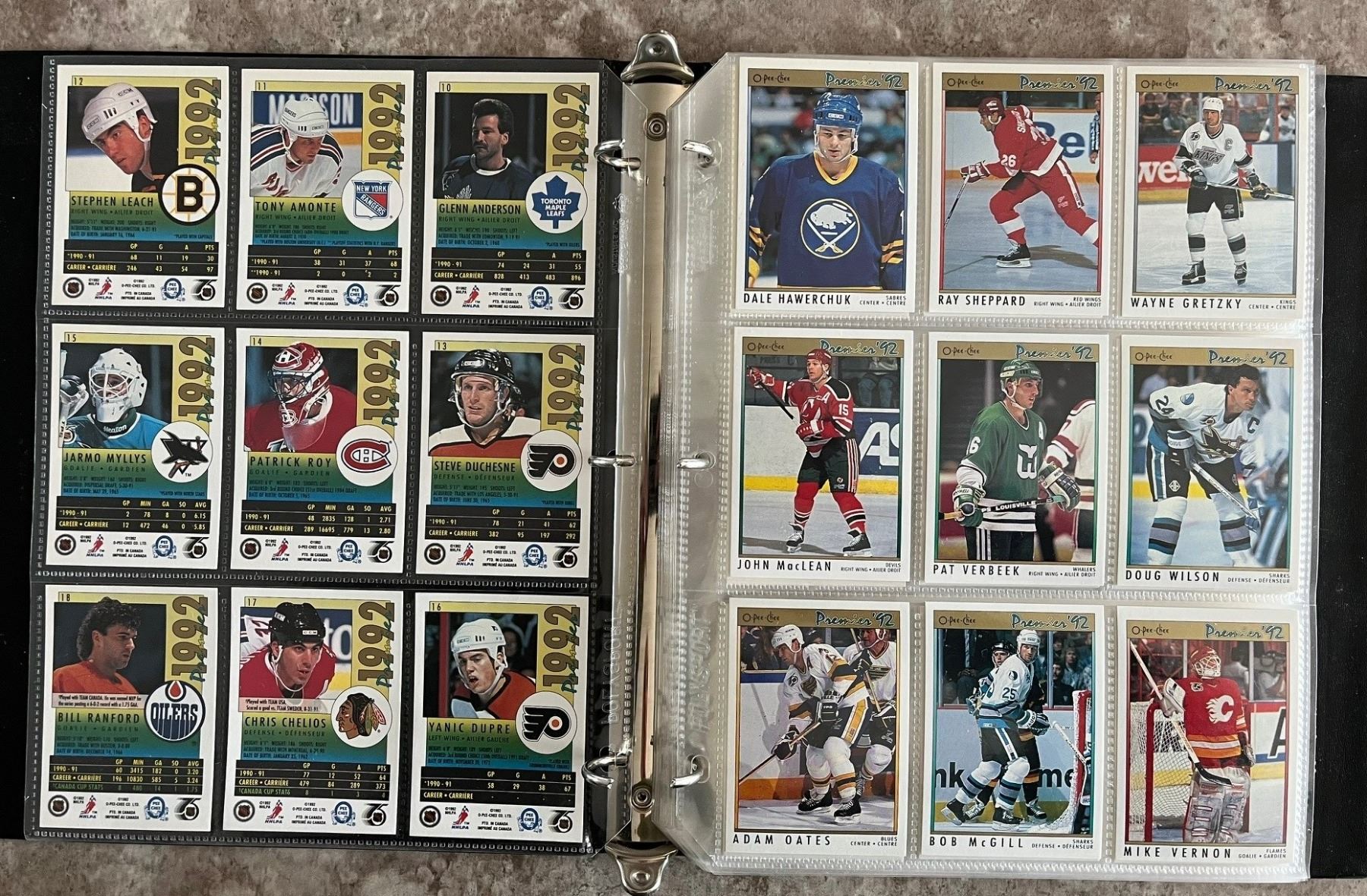 O-Pee-Chee (OPC) Premier 92 complete set in binder. Cards 1 – 198. Gretzky.