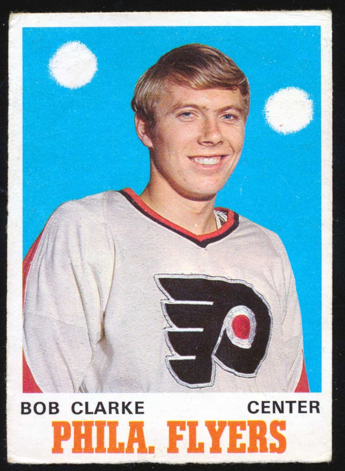 Bobby Clarke #16 of the Philadelphia Flyers (1970-71) , O-Pee-Chee company Card #195.