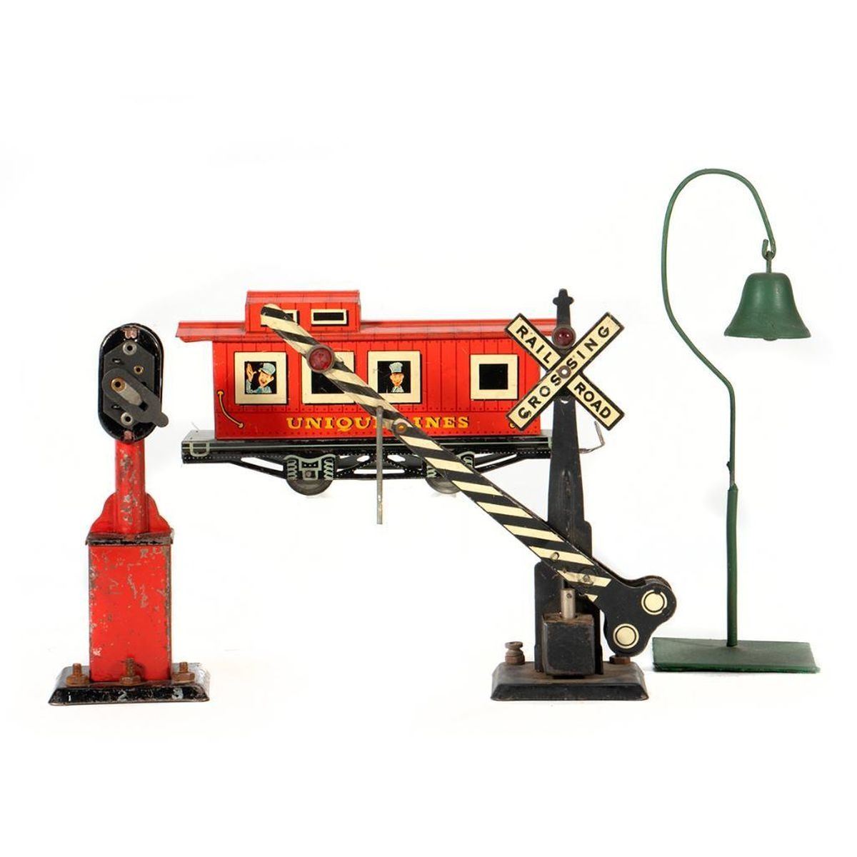 O Scale-Unique Lines Caboose, El Camino Real Bell, Marx Crossing Gate, Marx 2 light Block Signal