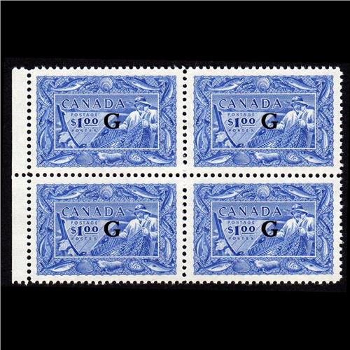 #O27 XF-NH MARGIN BLOCK OF 4 OVERPRINTED *G* CAT$750.00<Br>*** ITEM HAS NO FAULTS ***