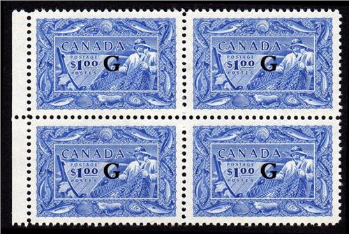 #O27 XF-NH MARGIN BLOCK OF 4 OVERPRINTED *G* CAT$750.00