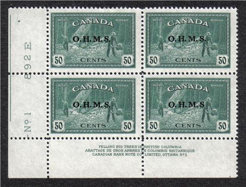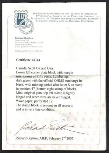 #O9+O9a NH LL PLATE BL 4 *MISSING PERIOD VARIETY ERROR*