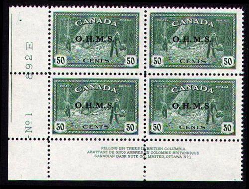 #O9A VF-NH LOWER LEFT PL BLOCK No1 *MISSING DOT VARIETY