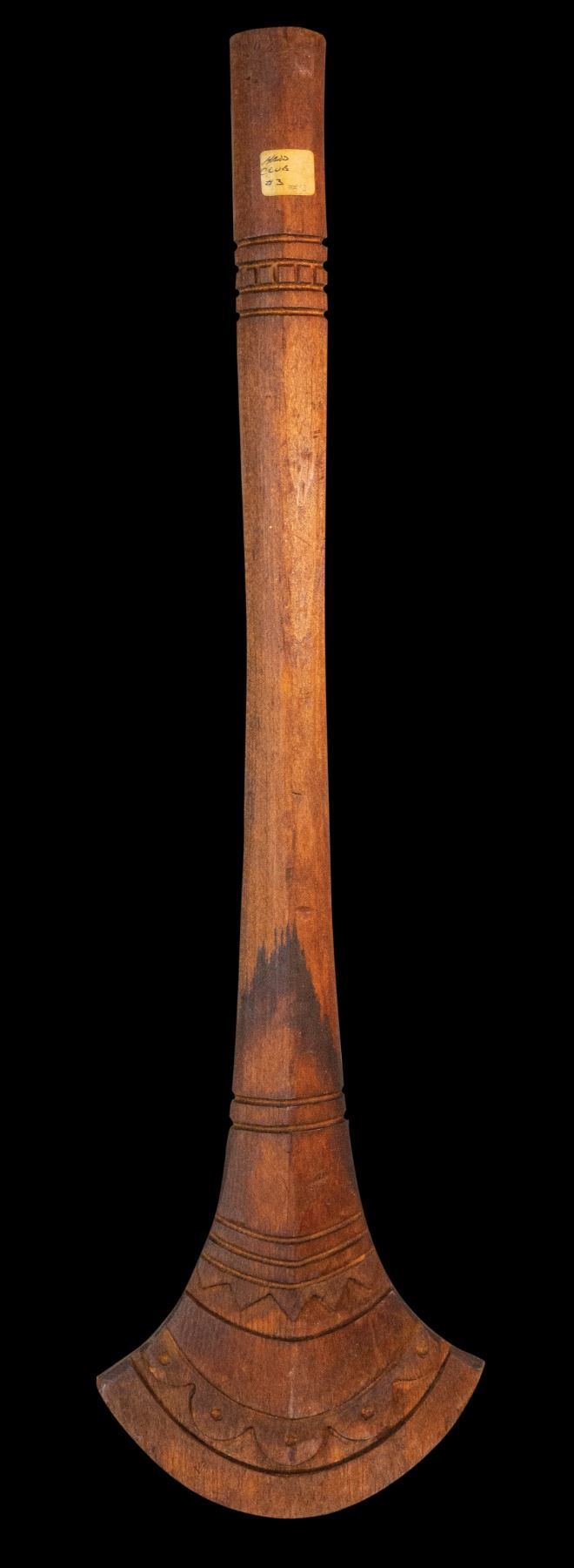 (1960s) Short war club carved on both sides. This style has been dormant for decades. 26"x7". VG+ with typical wear.
