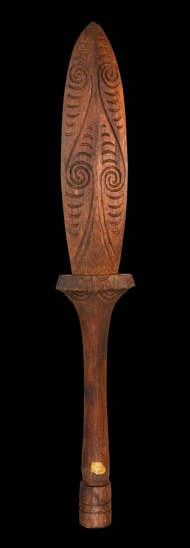 (1960s) Short war club carved on both sides. This style has been dormant for decades. 30.5"x5". VG+ with typical wear.