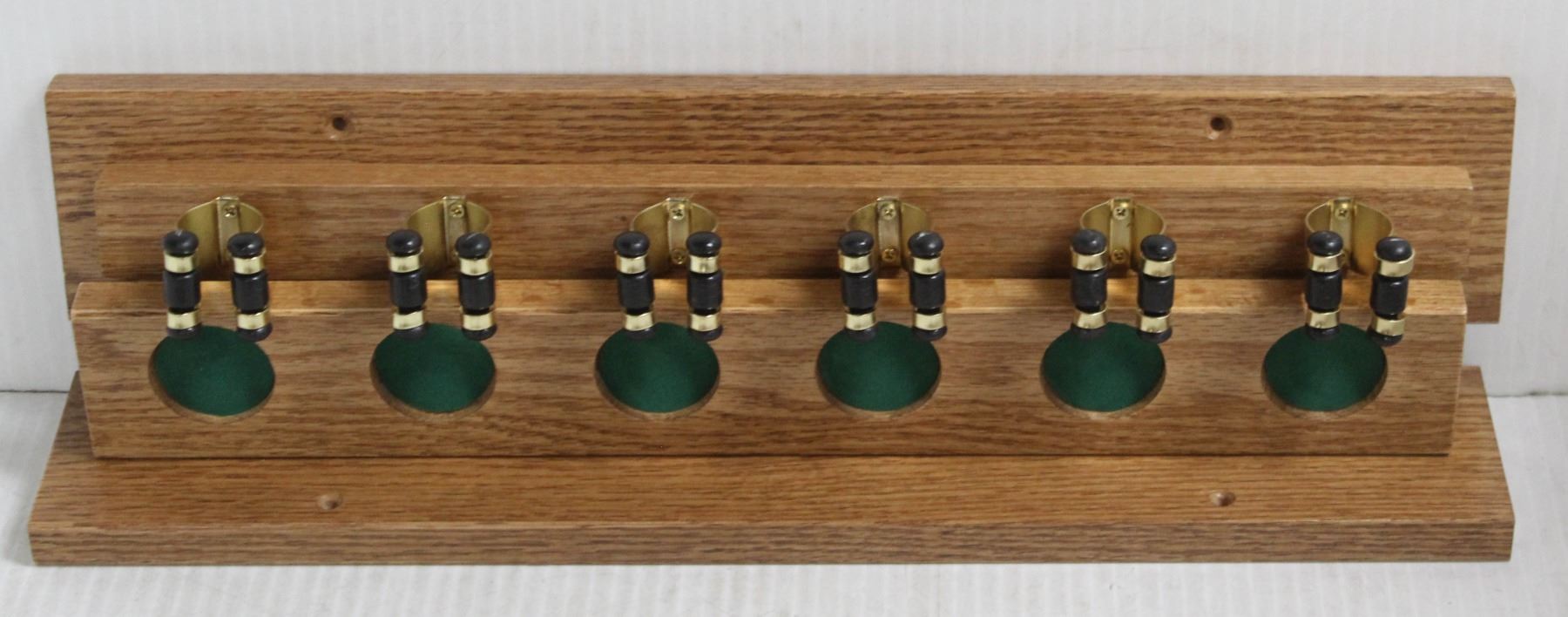 OAK- 2PC 6 SLOT PRESSURE FIT POOL CUE WALL RACK