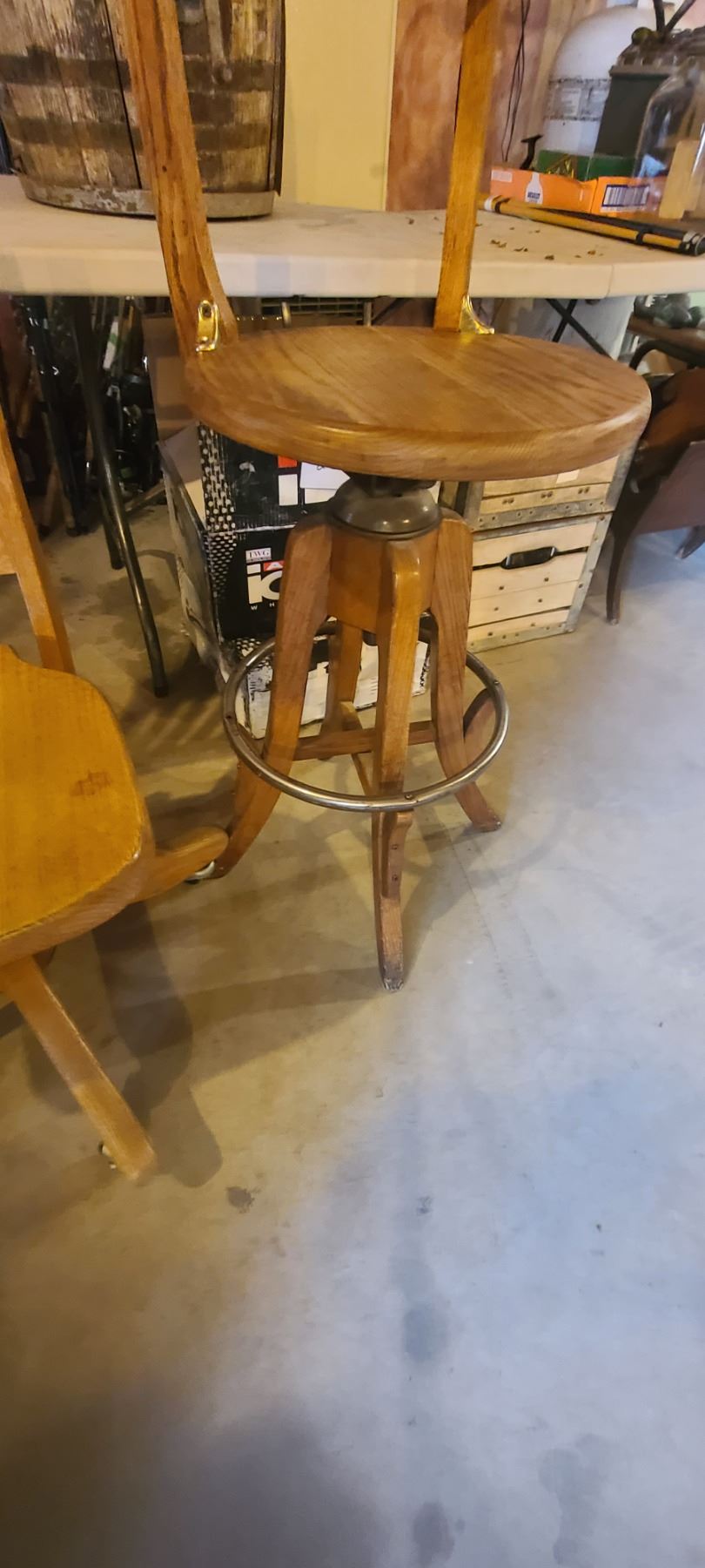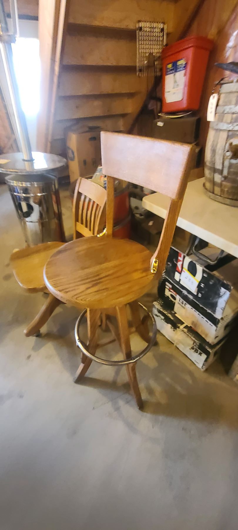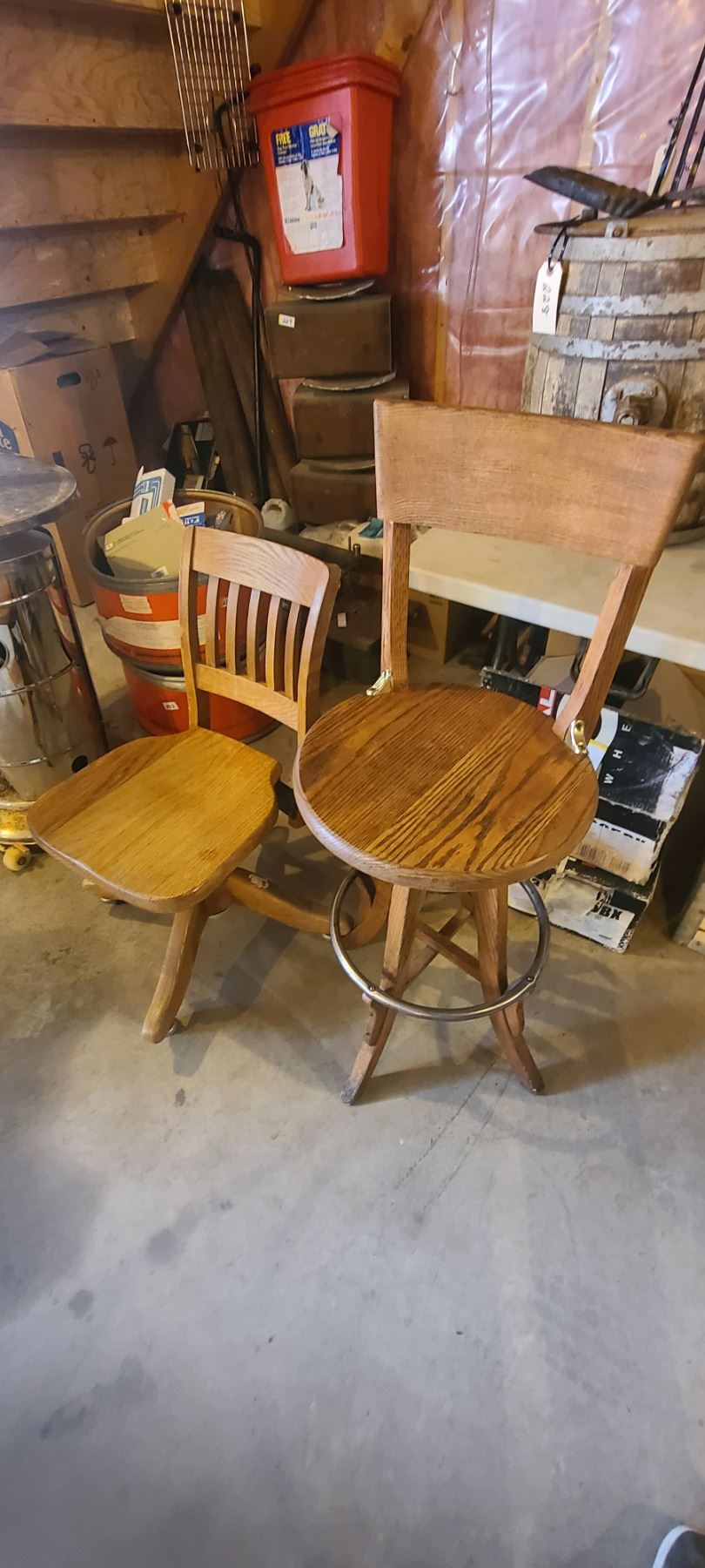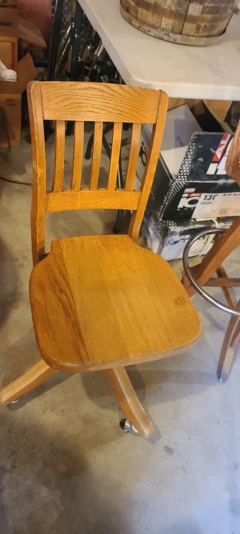 OAK BAR STOOL AND OAK OFFICE CHAIR