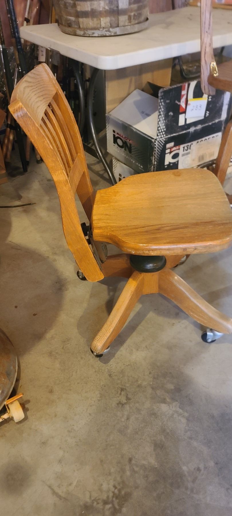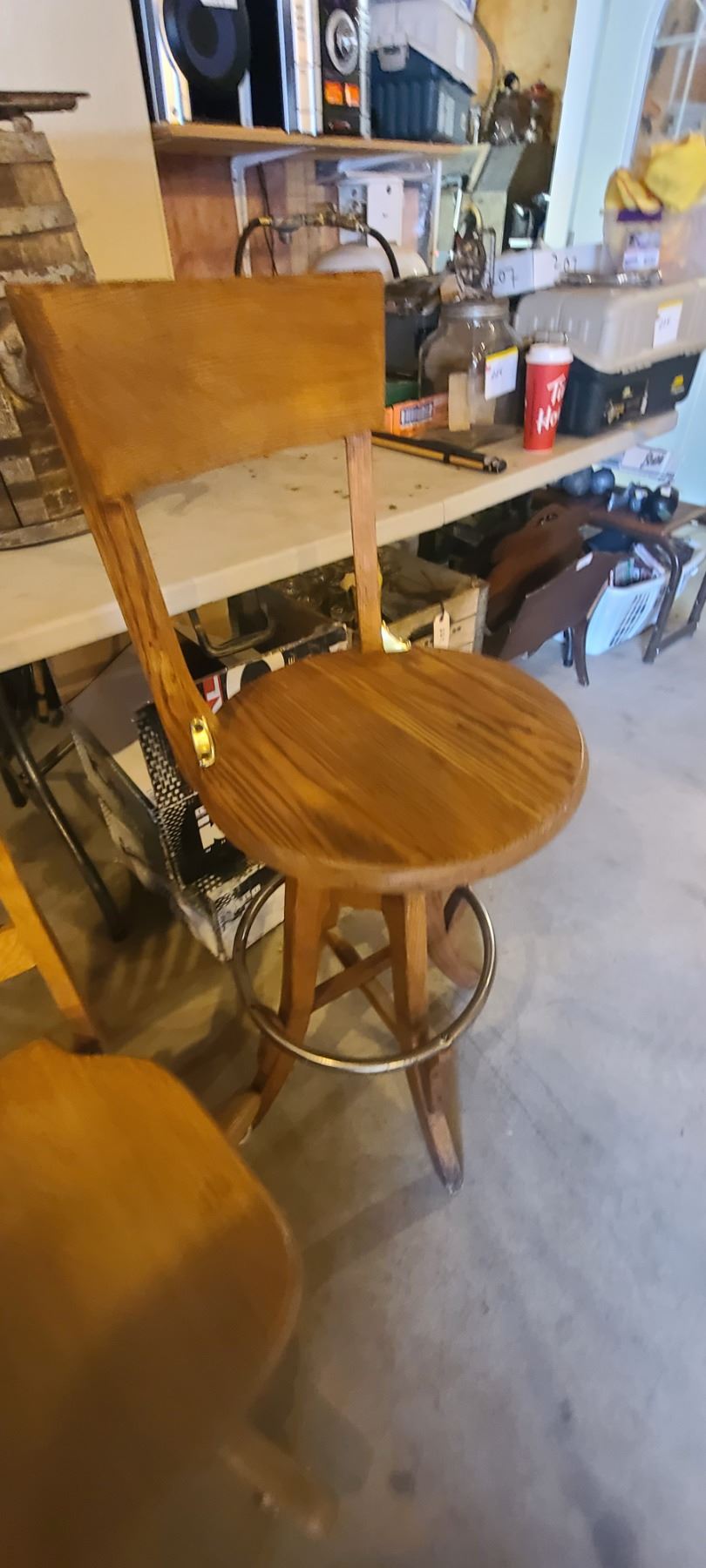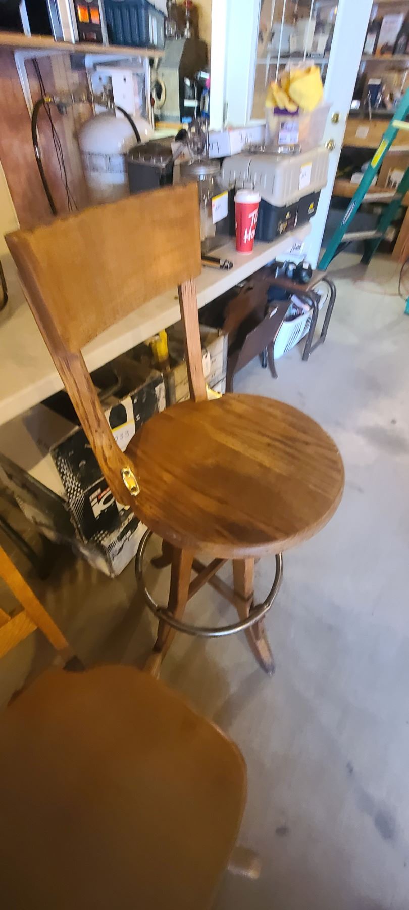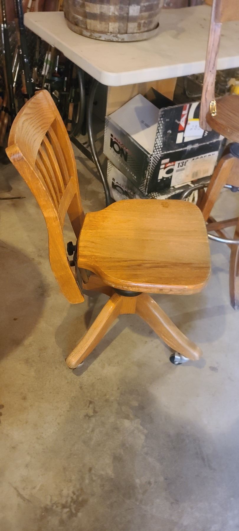 OAK BAR STOOL AND OAK OFFICE CHAIR