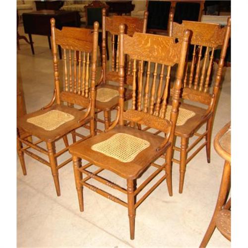 SET OF FOUR OAK CANE BOTTOM SIDE CHAIRS. 42” H to top of back