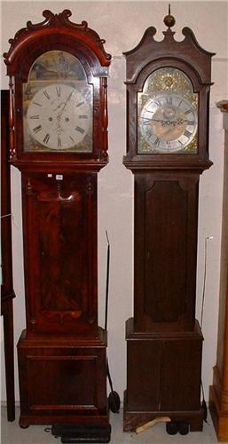 OAK CASED GRANDFATHER CLOCK WITH BRASS AND SILVER DIAL
