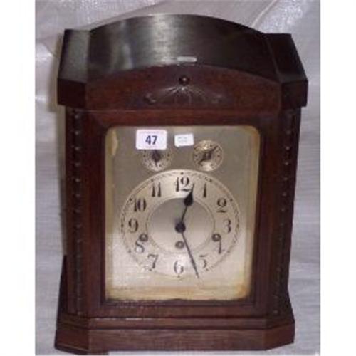 OAK CASED SILVER DIAL CHIMING MANTLE CLOCK