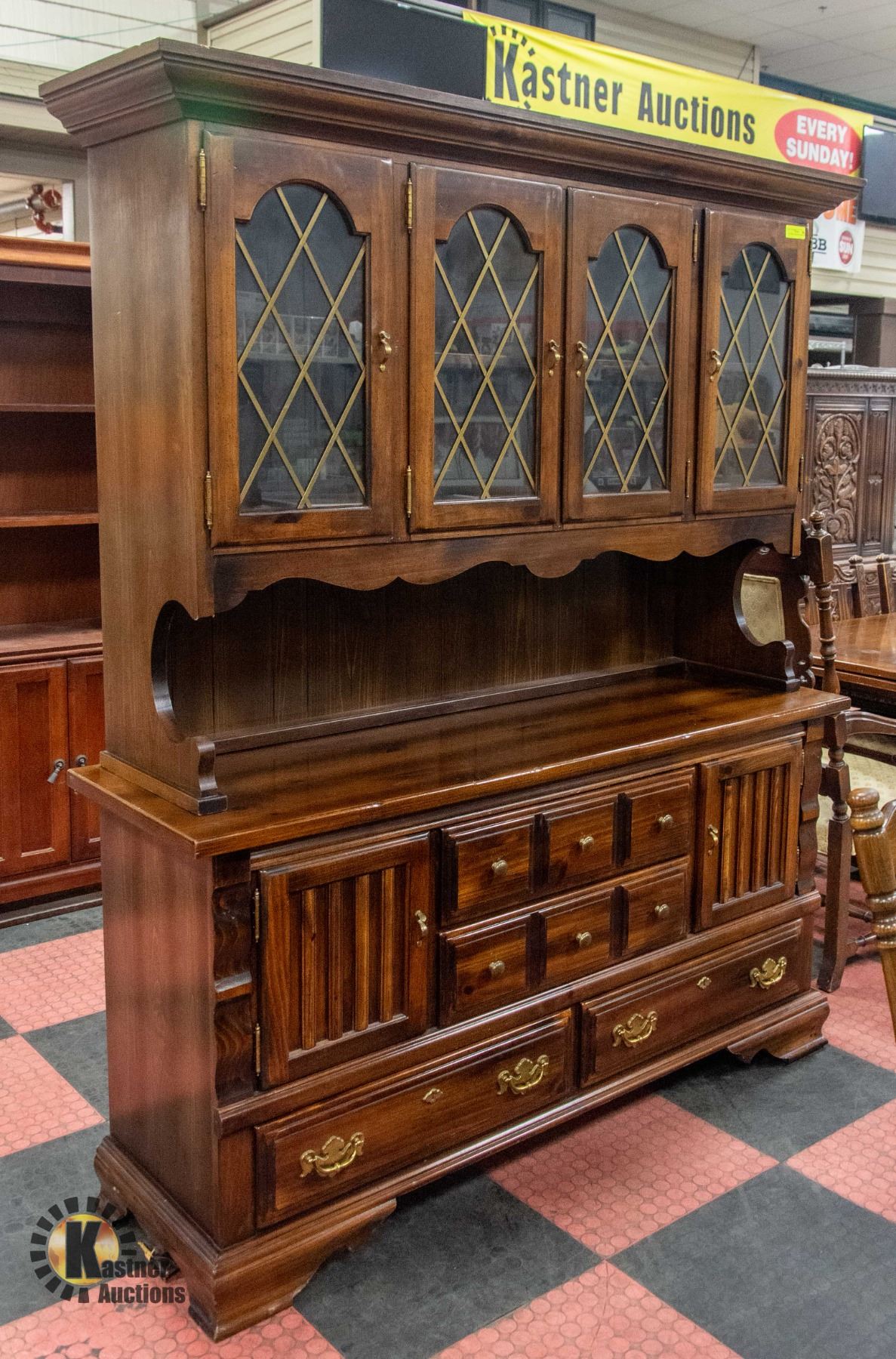 OAK CHINA CABINET/HUTCH- 78" X 65.5" X 17"