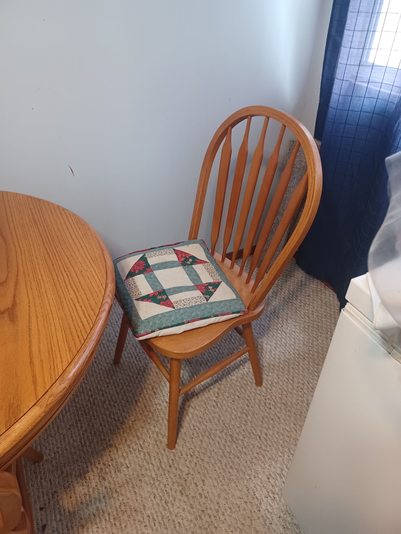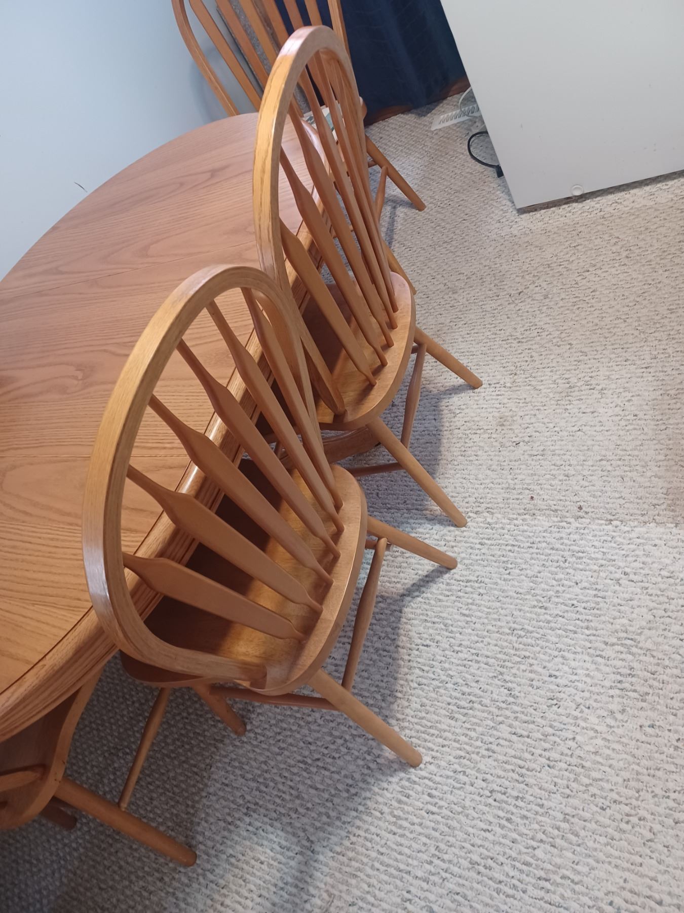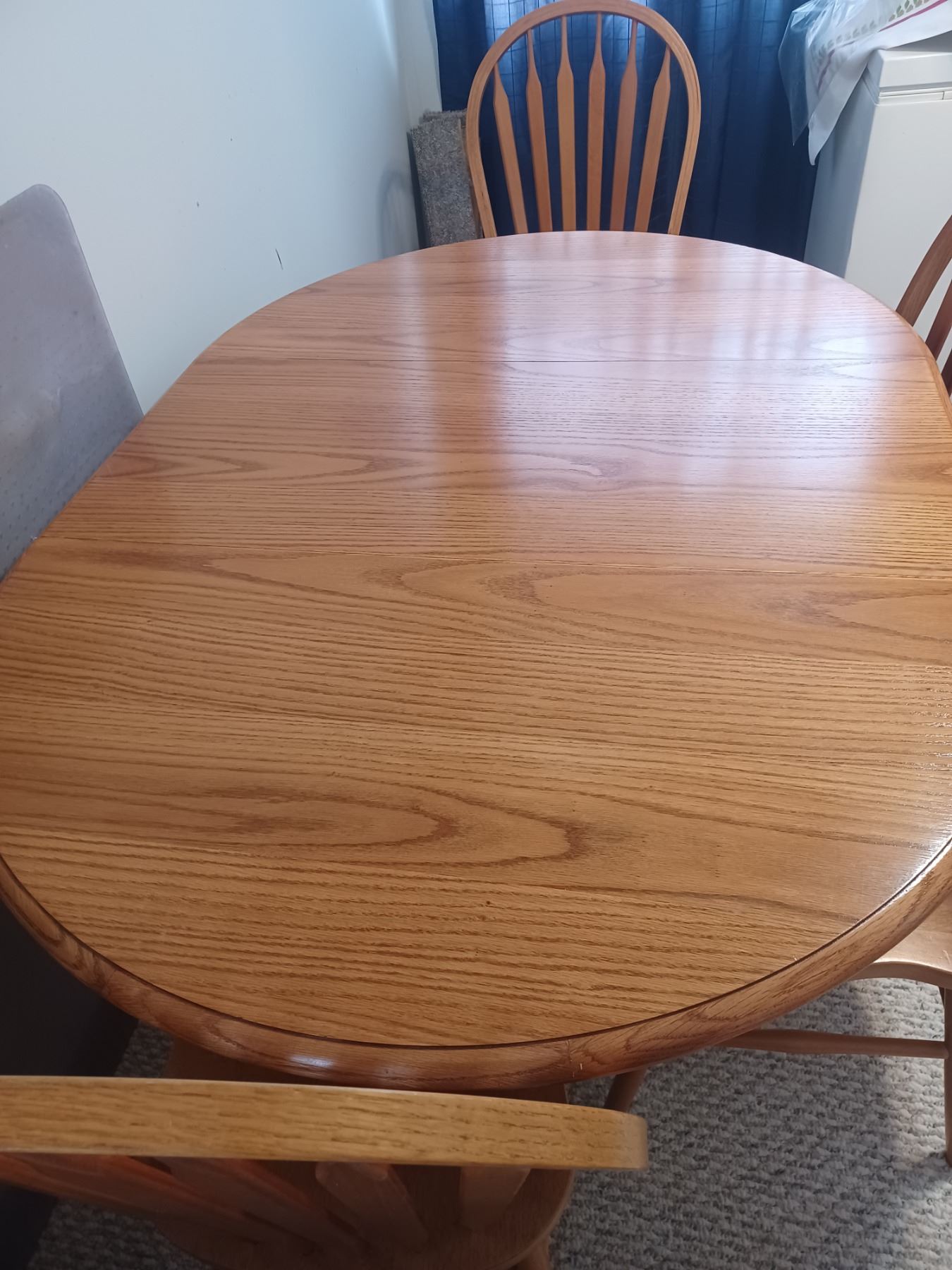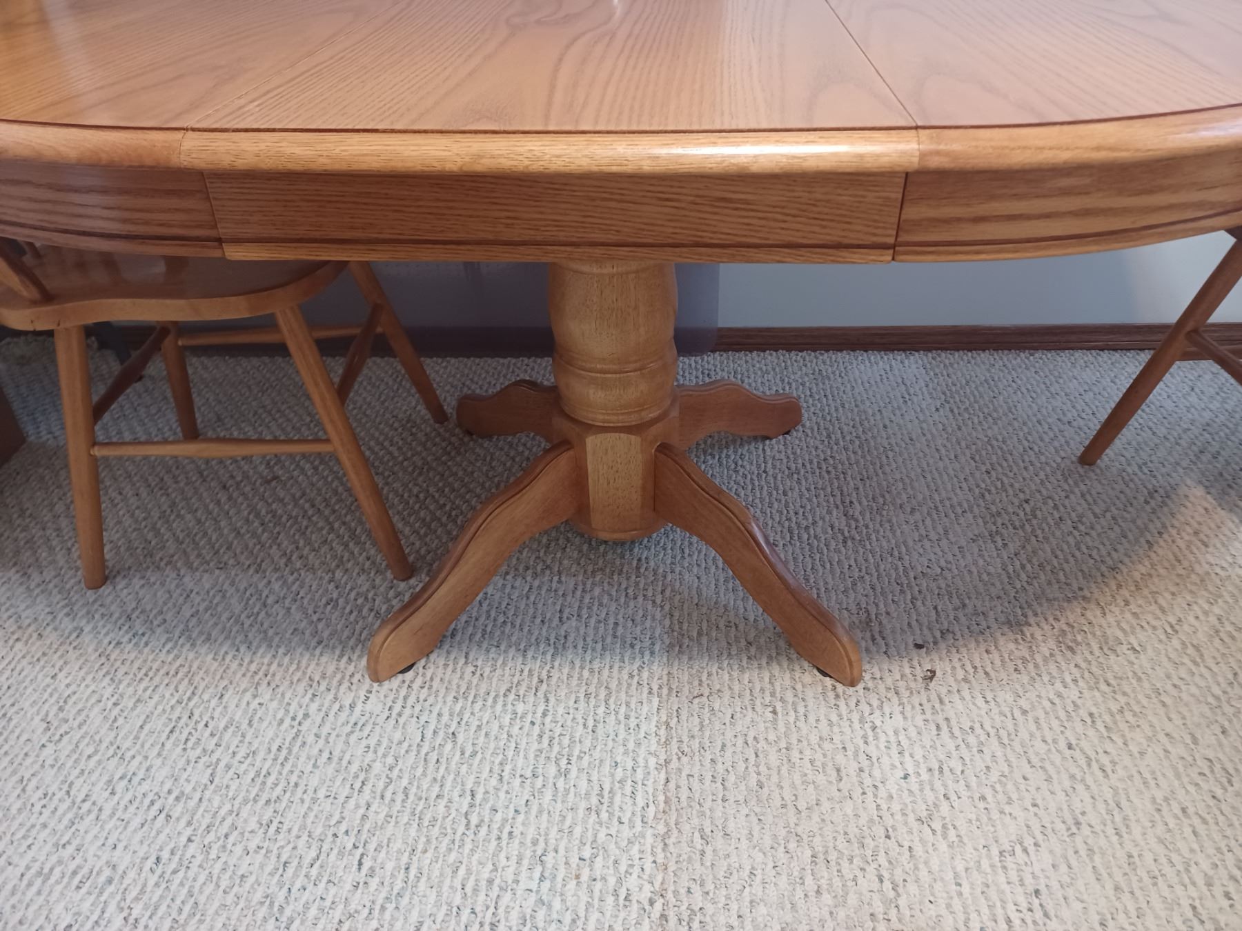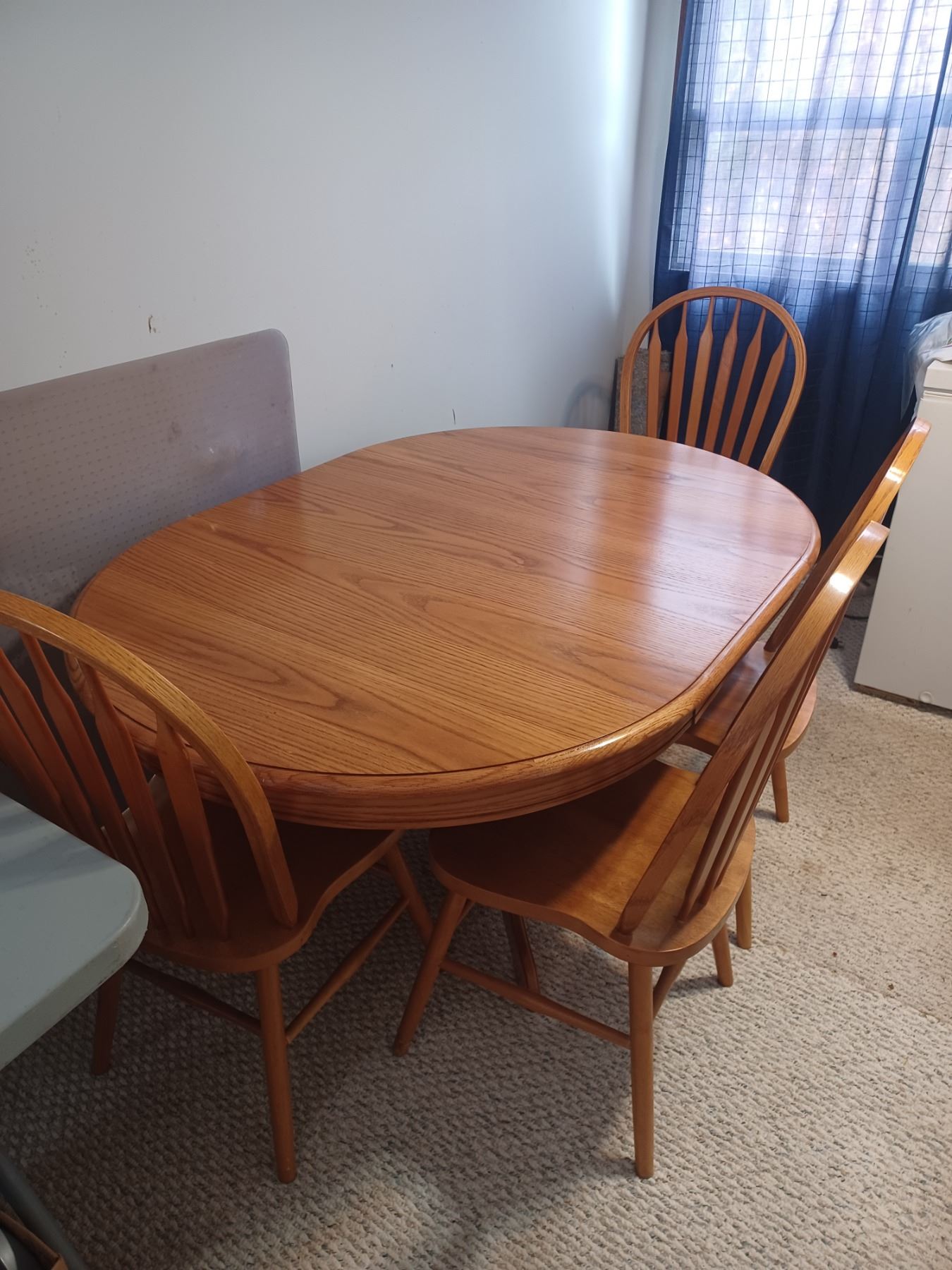 OAK DINING ROOM TABLE C/W LEAF AND 4 CHAIRS