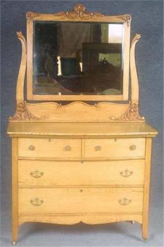 EARLY 20TH CENTURY OAK DRESSER with beveled mirror height: 72",width: 44"