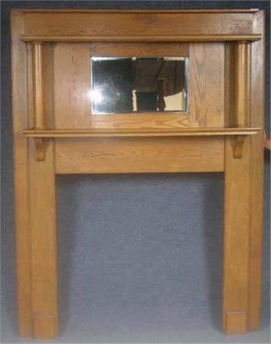OAK FIREPLACE MANTLE with beveled mirror, full c