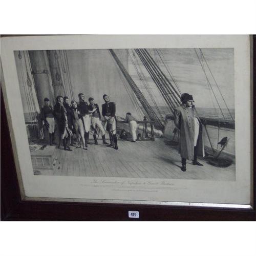 OAK FRAMED ENGRAVING "THE SURRENDER OF NAPOLEON TO GREAT BRITIAN"