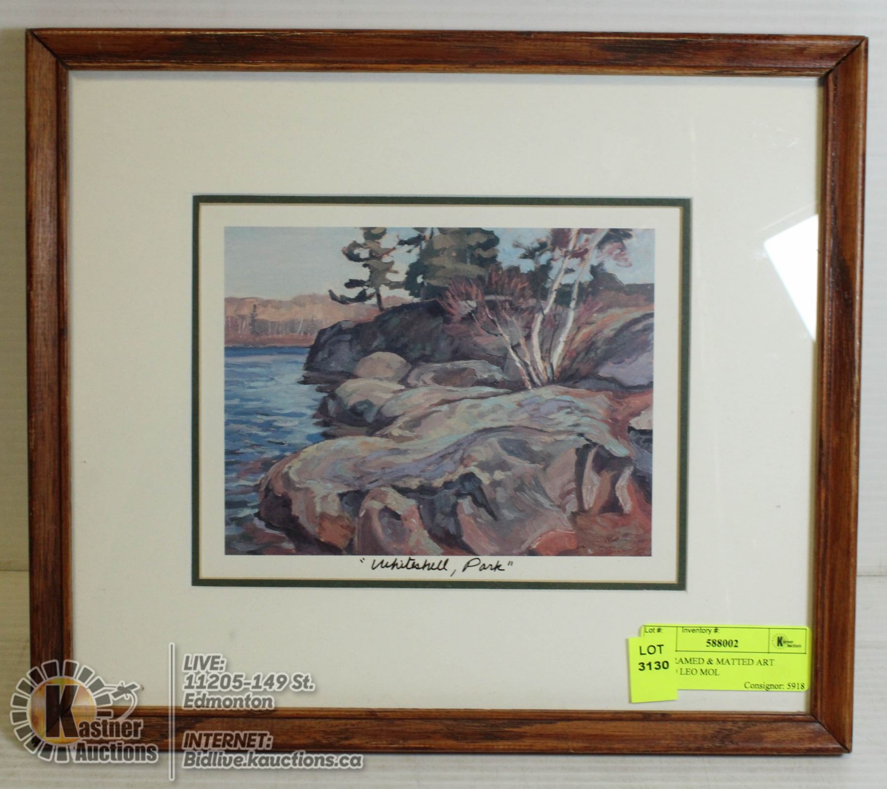 OAK FRAMED & MATTED ART SIGNED LEO MOL