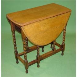 OAK WILLIAM & MARY GATE-LEG TABLE W/DROP-LEAVES. Twisted legs. 28.5"H, 30"L, 13.5" D. Each leaf measures 13.5" wide. Good overall condition.
