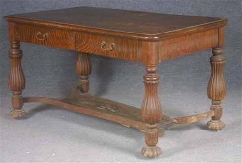 OAK LIBRARY TABLE with two drawers, original hardware height:30",top:32 1/2"x54"