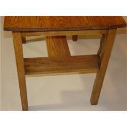 OAK LIBRARY TABLE. Small amount of damage to bottom of right front leg. 28.5" H, 36" W, 23.5" D