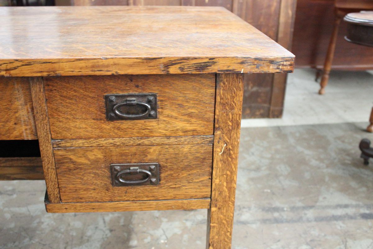 OAK MISSION DESK ATTRIB. TO STICKLEY - GREAT HAMMERED HARDWARE - LABEL MISSING