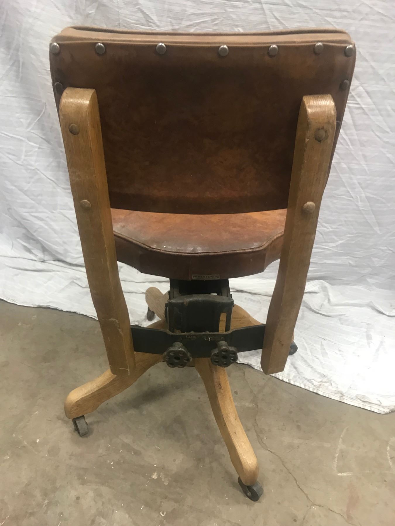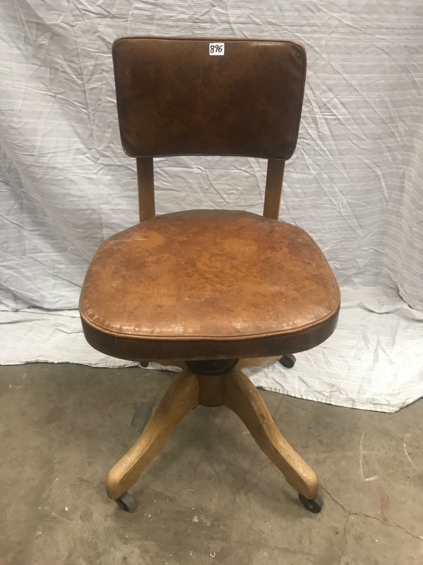 OAK OFFICE CHAIR (LEATHER SEAT AND BACK)