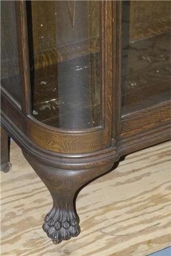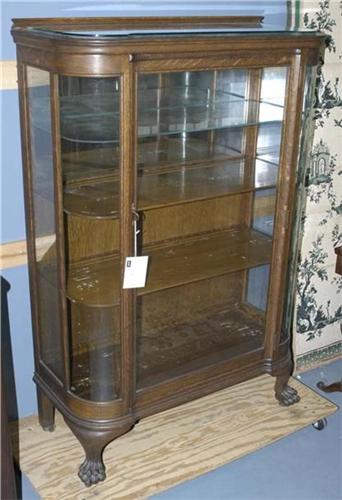 OAK PAW FOOT CHINA CABINET, with mirrored back, circa 1910, CONDITION: clean original condition,