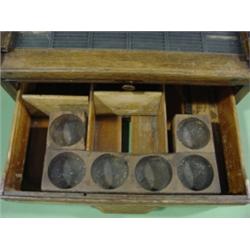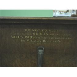 OAK REGISTER RECEIPT BOX WITH DRAWER. 27.25" H, 22.75" W, 21.25" D