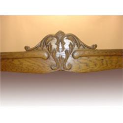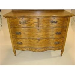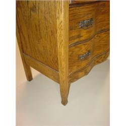 Oak serpentine front chest of drawers with mirror. Two small drawers over two larger drawers. 39.75" H, 79.5" H to top of mirror, 43.75" W, 22.25" D.