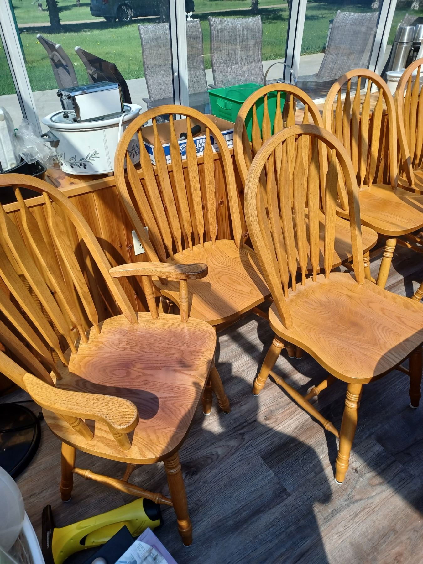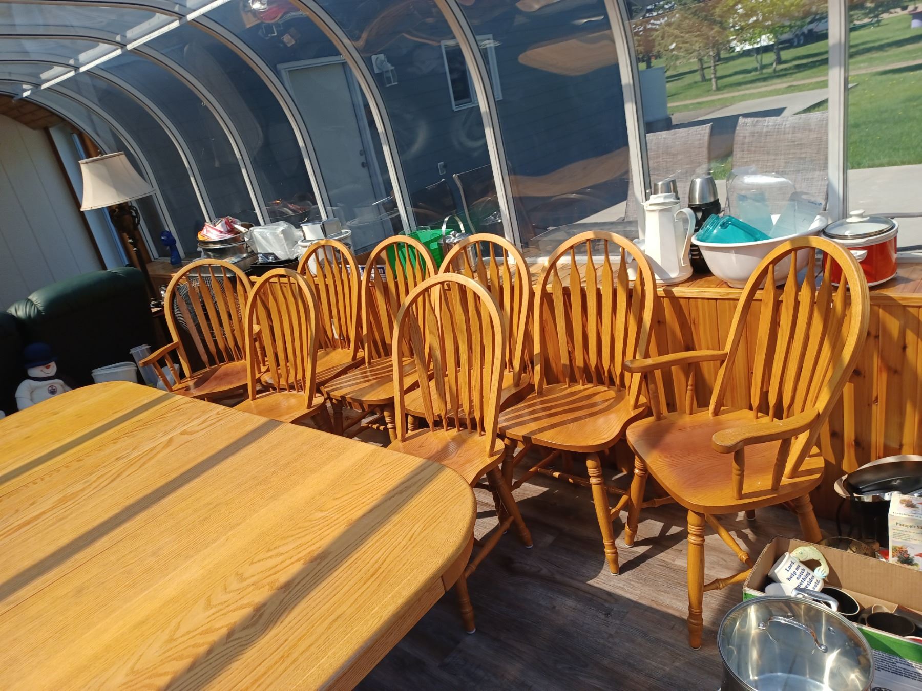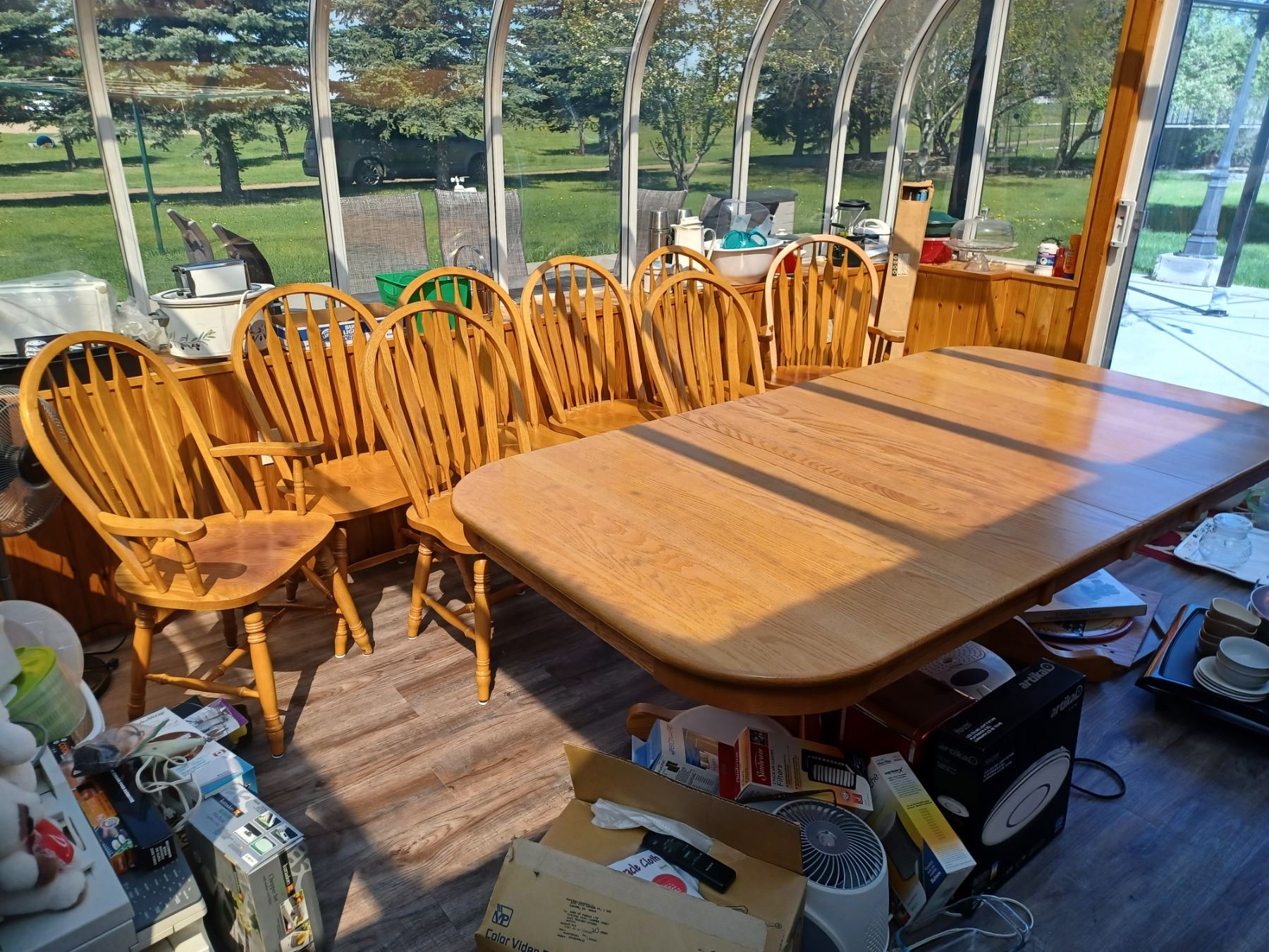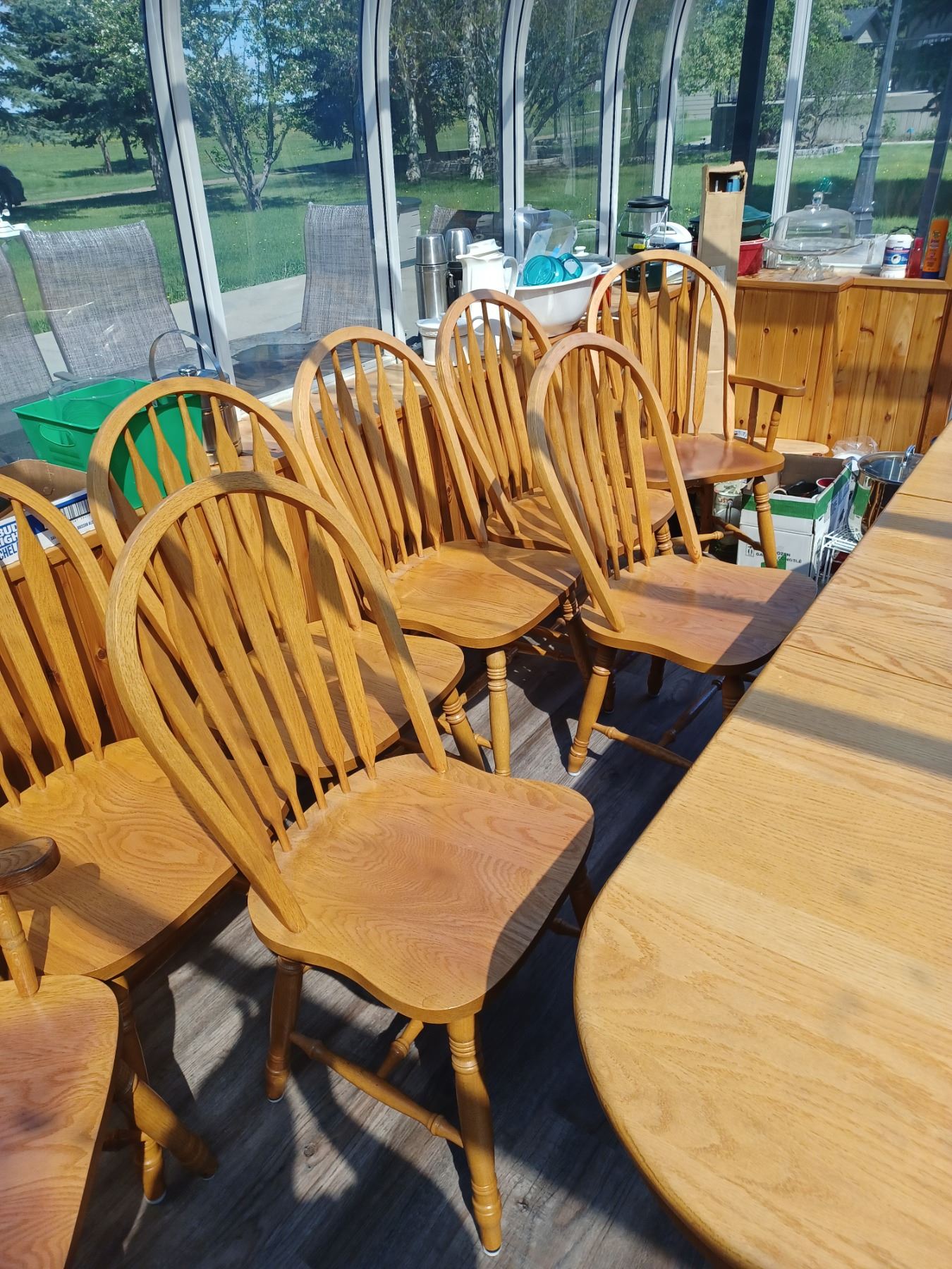 OAK TABLE WITH EIGHT CHAIRS